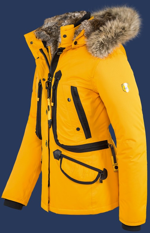 Высокого класса Премиум Стиля куртка с разнообразными деталями и большими возможностями. Особенностью номер один является объемный капюшон, который утеплен изнутри съемным искусственным мехом с меховым краем. Искусственный мех такого высокого качества, что его едва ли можно отличить от настоящего. Если открыть водонепроницаемые молнии, которые проходят через капюшон, он ложится полукругом на плечи. Он так же является съемным и регулируемым. Brasilera является пуховиком. Это делает ее не только действительно удобной и теплой, но и очень легкой. Один взгляд во внутрь и вы убедитесь что Wellensteyn заботится не только о дизайне снаружи. Ярко желтая подкладка, она имеет особенность: эффект три-в-одном за счет съемного внутреннего жилета; черная снаружи, желтая внутри, с желтыми водонепроницаемыми молниями, карманами и все, что идет с ними. За широкими накладными молниями находятся большие нагрудные карманы. Складки сзади предоставляют большую свободу передвижения. Трикотажные манжеты в рукавах, мягкая флисовая подкладка в карманах все это относится к стандартам Wellensteyn. Brasilera легко чистить. Рекомендуется машинная стирка при температуре 30°С. Не рекомендуется применять смягчители ткани и химическую чистку. Пожалуйста, следуйте символам по уходу на этикетке (во внутреннем кармане) и стирайте пуховик отдельно. Используйте только специальное моющее средство для пуха. Разложите пуховик, чтобы его высушить. Встряхните несколько раз после сушки. Всегда храните в сухом месте, чтобы избежать гниения.