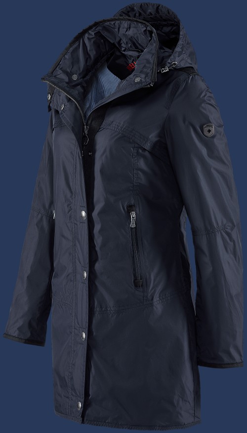 Легкое летнее Wellensteyn пальто. Водо и ветероустойчивое, с регулируемым в двух направлениях капюшоном на кнопках, оно является идеальным компаньоном для прохладных летних дней. Изогнутые швы делают силуэт приталенным, незаметные карманы на молниях вшиты в швы. Изогнутая кокетка на груди продолжается на спине, разрез в подоле можно открыть молнией, он закрыт внешней тканью так, что ветер и дождь не попадут внутрь. Тонкий контраст создает черная лента на плечах, на рукавах и на ободке капюшона. Рекомендуется машинная стирка при температуре 30°С. Не рекомендуется применять смягчители ткани и химическую чистку.