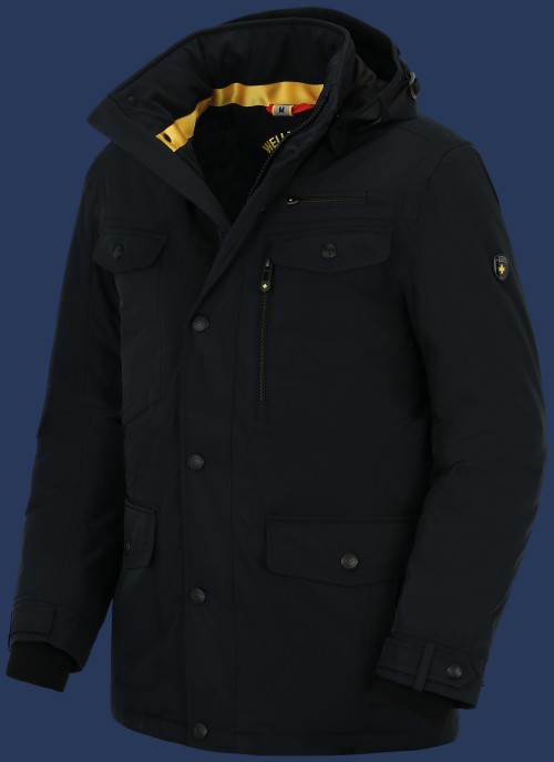 На первый взгляд, классическая мужская куртка, но при ближайшем рассмотрении, она имеет много необычных деталей. Асимметричные нагрудные карманы, сложные параллельные декоративные строчки на клапанах, необычный ход швов. Боковые карманы имеют удобные отверстия для рук. Супер инновационной является обработка воротника, в котором видна узкая полоска из контрастного материала. Из такого же материала изготовлены ригели в задней части, с помощью которых можно регулировать объем талии. В задней области плеча находятся складки, обеспечивающие свободу движений, манжеты на рукавах можно регулировать с помощью ригелей. Куртку Chester легко стирать в стиральной машине при температуре 30°C, однако, не следует применять смягчители ткани или химчистку.