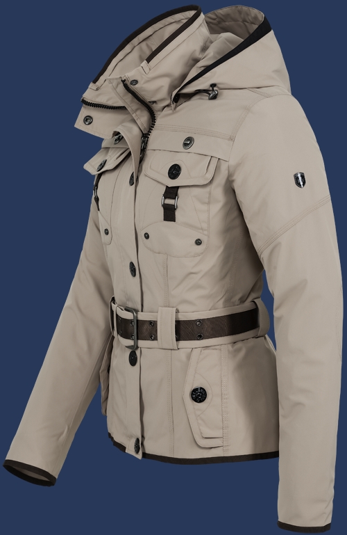 Куртка « Шоколад» - это модная, легкая , сзади слегка удлиненная, женская куртка. Она имеет два нагрудных кармана, два боковых кармана и внутренние карманы с застежкой. Слегка приталенная куртка удобна в носке благодаря используемым материалам и продуманной конструкции. Дизайнерскими находками являются молнии на рукавах, украшенные кнопками отверстия нагрудных карманов и ребристые детали на карманах и на поясе. Модный, высокий воротник – стойка и легкая подкладка из вискозы – полиэстер дополняют картину. Благодаря свойствам ткани #46 и 140 куртка является водо- и ветрозащитной и дышащей, куртка «Шоколад» является трендовой моделью сезона весна-лето. Она проста в уходе, рекомендуется стирка в стиральной машине при температуре 30 ° . Не рекомендуется применять смягчители ткани и химическую чистку.