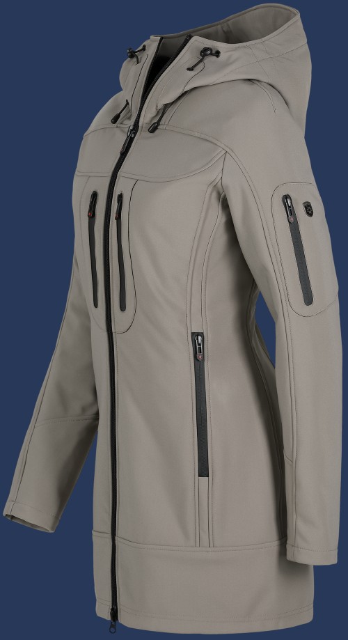 Является уже долгое время нашим SoftShell бестселлером. Проверенную конструкцию мы оставили как есть: Многочисленные спортивные вытачки, карманы спереди и на рукавах с водонепроницаемыми молниями, два удобных, просторных кармана на молнии и прилагается, регулируемый в трех направлениях капюшон. Эластичный шнур и стоппер делают модный акцент. Узко скроенная куртка дает абсолютный комфорт, потому что имеет 7% эластана в составе ткани. В новой длине она теперь идеально подходит для барбекю или осенних прогулок. Трехслойная ткань ветро -влагонепроницаемая и дышащая. Рекомендуется машинная стирка при температуре 30 °. Не рекомендуется применять смягчители ткани и химическую чистку.