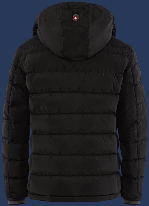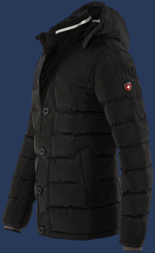 Теплая стеганная куртка. Задняя верхняя область рукавов, плечи и карманные края обшиты грубой шерстью, в рукавах вязаные манжеты для комфорта. Карманные проемы закрываются на молнии, вся куртка (за исключение рукавов) выстлана мягким мехом Тедди. Капюшон является съемным, регулируемым в двух направлениях. Рекомендуется машинная стирка при температуре 30°С. Не рекомендуется применять смягчители ткани и химическую чистку.