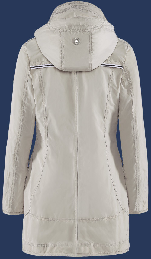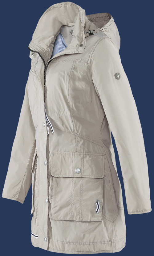 Легкое летнее Wellensteyn пальто. Воротник имеет сверхвысокий крой и снабжено отсеком, так что (индивидуально регулируемый) капьшон может быть свернут и уложен внутрь. Незаметные нагрудные карманы закрываются на молнии, большие накладные карманы предлагают много места для хранения, так же как и боковые карманы. Манжеты, отделанные подкладкой, имеют небольшие разрезы, которые могут быть открыты с помощью застежки-молнии, так ветер и дождь не попадут внутрь, на заднем подоле длинный разрез с застежкой-молнией для удобства передвижения. Кокетка на спине подчеркивается двухцветной лентой, которая придает куртке морском вид. Широкая черная лента на плечах. Рекомендуется машинная стирка при температуре 30°С. Не рекомендуется применять смягчители ткани и химическую чистку.