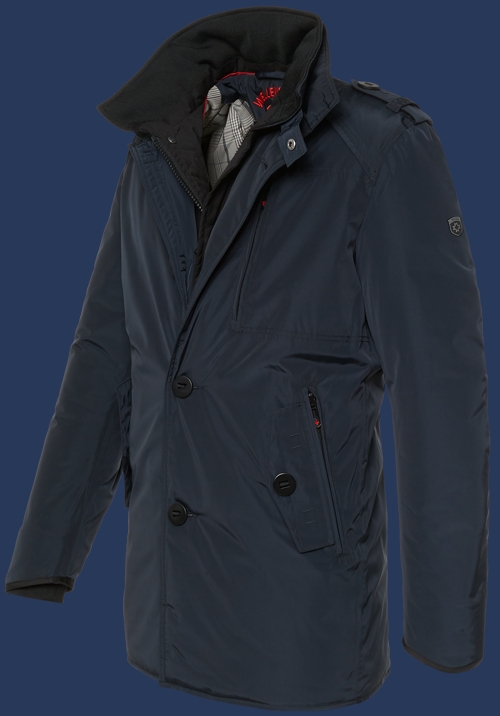 Является водонепроницаемой и ветроустойчивой короткой курткой с длиной спины 81 см в размере М. Есть четыре закрывающихся боковых кармана, нагрудный карман с застежкой-молнией и внутренние карманы, где ваши вещи будут храниться в безопасности. Особенная деталь этой куртки – это стиль "Два в одном". Внутренняя куртка имеет высокий трикотажный воротник с молнией спереди. Куртка имеет наклонную кокетку и погоны. Передняя планка с кнопками украшена тесьмой. Комфортабельные рукава слегка закруглены. Для удобства, есть два разреза на спине, а для тепла стеганая подкладка из полиэстера. Стильно скроенная куртка является классическим спортивным компаньоном для зимы. Рекомендуется машинная стирка при температуре 30 °. Не рекомендуется применять смягчители ткани и химическую чистку.