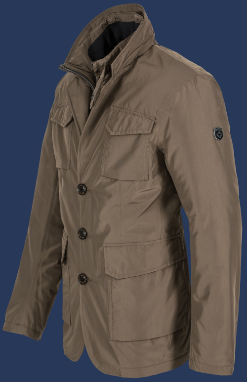 Многофункциональный материал из 100% полиэстера. Со своим изысканным изображением и матовым глянцем он выглядит очень высококачественно и элегантно. Сухой, слегка зернистый на ощупь. Ткань сохраняет форму, но при этом повторяет каждое движение. Она дает вам все преимущества, которые можно ожидать от синтетического материала. Материал является устойчивым к погодным воздействиям, не сминается и отталкивает грязь. Благодаря ламинированной ткани, он имеет водо-и ветрозащитные качества, но также обеспечивает воздухопроницаемость. Этот материал можно стирать в машине при 30°С. Не рекомендуется применять химическую чистку и смягчители ткани.