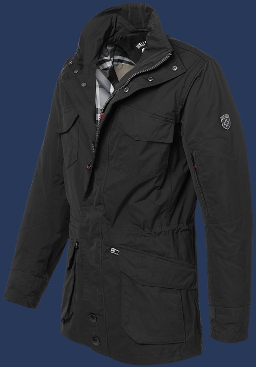 Свободная курка в стиле 4-Pocket-Style (стиль четырех карманов) с асимметричными карманами и плоскими пришитыми карманами на груди. В нижней части объемные карманы с удобными боковыми отверстиями для рук, которые могут закрываться молниями. Вокруг воротника есть контрастная тесьма. Талия регулируется изнутри стоппером. На левом рукаве есть дополнительный карман на молнии. Благодаря ламинированию на ткани внутри, куртка Мондриана водонепроницаемая и ветрозащитная, но дышащая, швы проклеены. Ее легко чистить и можно стирать в машине при 30°С. Не рекомендуется применять химическую чистку и смягчители ткани.