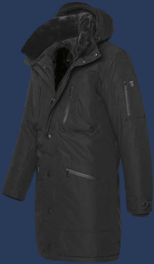 Современная мужская куртка на зиму с тонким почти незаметным рисунком в клеточку. Четыре плоских трапециевидных кармана с водонепроницаемыми молниями. Внутренний воротник из искусственного меха является съемным, в рукавах есть мягкие, теплые трикотажные манжеты. Капюшон съемный, регулируемый в двух направлениях. Шнурок со стопперами внутри гарантирует, что талию можно отрегулировать по ширине. Куртка имеет ламинирование, она водонепроницаемая и ветрозащитная с проклеенными швами. Ее легко чистить и можно стирать в машине при 30°С. Не рекомендуется применять химическую чистку и смягчители ткани.