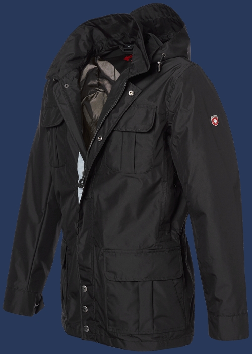 Прямого покроя мужская летняя куртка. Двусторонняя молния дает свободу передвижения и комфорт. Четыре накладных кармана закрываются скрытыми кнопками. Два внутренних кармана имеют молнию, чтобы мелкие вещи не выпадали из них. Кроме того, куртка обладает стоячим воротником, кулиской на поясе, чтобы регулировать ширину талии и легкой летней подкладкой. Съемный капюшон и тонкая серебряная полоса на передней планке являются дизайнерскими деталями. Ее легко чистить и можно стирать в машине при 30°С. Не рекомендуется применять химическую чистку и смягчители ткани.