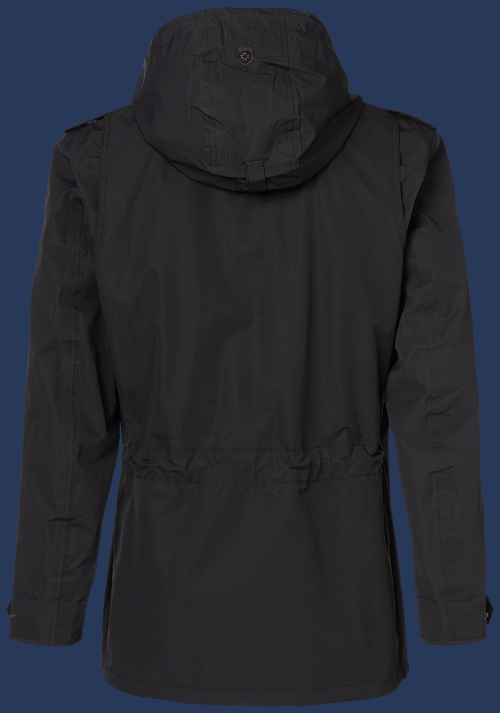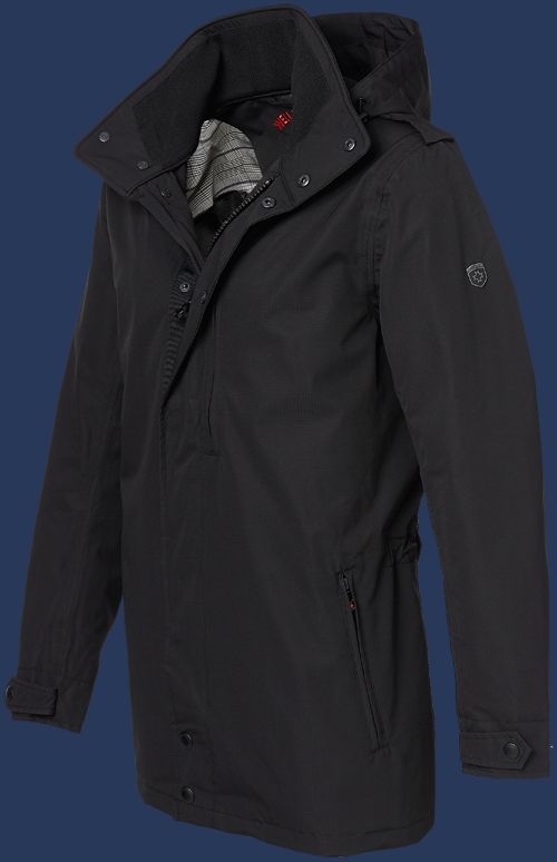 Классически-спортивная куртка, также подходящая для офиса. Это простая правильная куртка для мужчин, которые не хотят излишеств. Четыре сдержанных, закрывающихся на молнии передних кармана, два внутренних кармана. Благодаря прямому покрою и длине, эту легкую куртку можно носить поверх пиджака. Капюшон съемный, регулируемый в двух направлениях при необходимости. Внутренний воротник из трикотажа для комфорта. Другим акцентом является клетчатая подкладка. Талия регулируется шнурком. Куртка ветрозащитная и водонепроницаемая, швы проклеены. Ее легко чистить и можно стирать в машине при 30°С. Не рекомендуется применять химическую чистку и смягчители ткани.