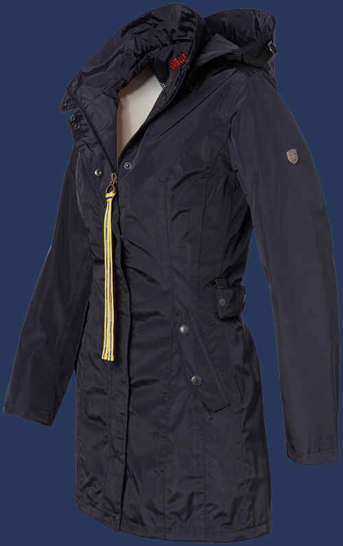 Простой, облегающий плащ. Красивый, приятный силуэт с рельефными швами и вытачкой спереди, однако, со сдержанным дизайном. Два удобных боковых кармана являются водонепроницаемыми. Ярким элементом является длинная молния контрастного цвета с лентой, которая может быть также снята. Сзади на талии можно использовать регулируемый ремень, который акцентирован черным кантом. Капюшон съемный, регулируемый кулиской. Благодаря ламинированной ткани внутри куртка водонепроницаемая и ветрозащитная, швы проклеены. Рекомендуется машинная стирка при температуре 30 °. Не рекомендуется применять смягчители ткани и химическую чистку.