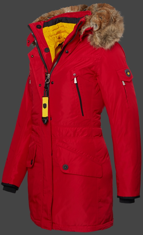 Куртка премиум класса с действительно большим количеством деталей и больших возможностей. Первое, что притягивает взгляд, это огромный капюшон, выложенный изнутри мехом и с меховой окантовкой. Искусственный мех такого высокого качества, что его едва ли можно отличить от настоящего. Если вы откроете водонепроницаемую молнию, которая проходит через капюшон, он ложится на плечи, как накидка. Он является съемным и регулируемым, само собой разумеется. Если взглянуть внутрь куртки, то становится понятно, что Wellensteyn на этом не ограничился. Ярко желтая подкладка, плюс эффект три-в-одном эффект благодаря съемному внутреннему жилету; черный снаружи, внутри желтый, с желтыми водонепроницаемыми молниями и внутренними карманами. На спине также есть специальная деталь, среди сгибов скрыты отверстия, которые могут быть открыты застежкой-молнией и выложенные воздухопроницаемой сеткой. Ширина регулируется на талии, трикотажные манжеты в рукавах и подкладка из мягкого меха Тедди в карманах принадлежат к стандарту Wellensten. Содержит нетекстильную часть животного происхождения.