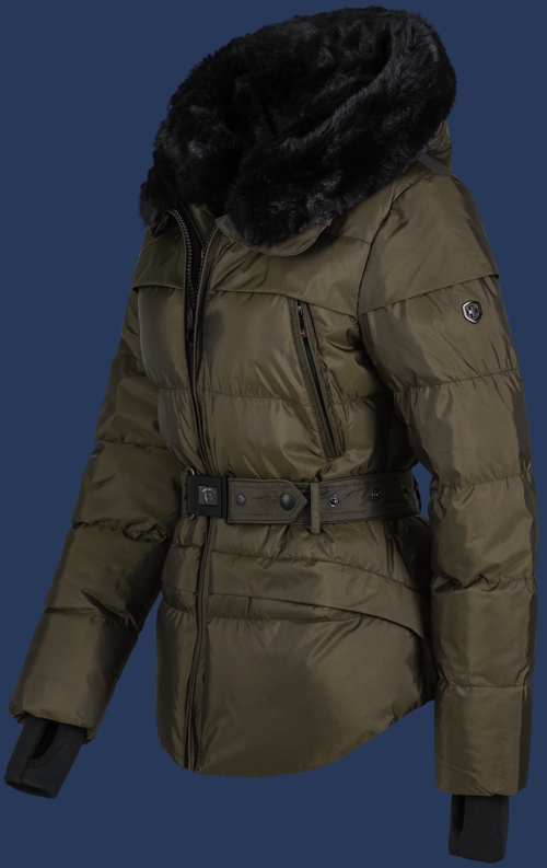 Скроенная сзади несколько длиннее, с немного полукруглым срезом куртка Tivoli это стиль в "Два в одном". У нее приталенный крой. Длина сзади около 70 см в размере М. Она является стеганым пуховиком с утеплителем. У куртки есть воротник-стойка, четыре наружных и два внутренних кармана и широкий регулируемый ремень. Внутренняя часть капюшона, отделана объемным искусственным мехом, который крепится на кнопках. Передняя двухсторонняя молния дает необходимую свободу передвижения. Рекомендуется машинная стирка при температуре 30 °. Не рекомендуется применять смягчители ткани и химическую чистку.