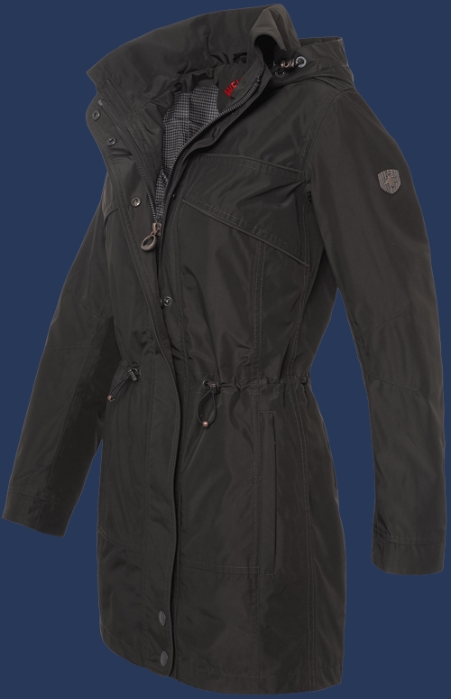 Свободная, скроенная чуть длиннее сзади летняя парка со съемным, регулируемым в двух направлениях капюшоном. Большой воротник можно носить высоко поднятым или собирать завязками. Удобные, незаметные отверстия для рук закрываются на молнии. Талию можно регулировать снаружи кулиской, что придает Vertigo спортивный вид. Декоративные швы отделаны кантом на груди. На заднем подоле есть разрез, закрывающийся на кнопки. Супер высококачественная куртка имеет ламинирование, что делает ее ветрозащитной и водонепроницаемой, швы проклеены, так что она является идеальным плащом для дождя. Рекомендуется машинная стирка при температуре 30°С. Не рекомендуется применять химическую чистку и смягчители ткани.