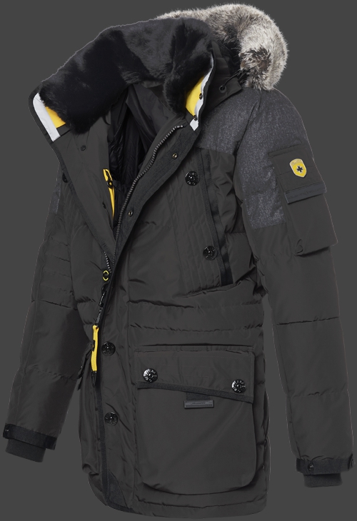 Теплая, средней длины стеганая куртка. Специальным акцентом является серая фланелевая ткань на плечах. Благодаря пуховому наполнению, куртка не только очень теплая, но она также очень легкая и комфортная. Широкие вставные карманы на груди отделаны декоративной строчкой и оттененными лентами и закрываются на кнопки. Большие складчатые карманы на бедрах облицованы теплым мехом Тедди. В рукавах есть трикотажные манжеты для дополнительного тепла. Внутренний воротник из искусственного меха и меховая отделка на капюшоне являются съемными. Цветной изюминкой является большой желтый Wellensteyn логотип на капюшоне. Он съемный и регулируемый в двух направлениях. Volverine легко чистить и можно стирать в машине при 30°С. Не рекомендуется применять химическую чистку и смягчители ткани. Пожалуйста, следуйте символам по уходу на этикетке (во внутреннем кармане) и стирайте пуховик отдельно. Используйте только специальное моющее средство для пуха. Разложите пуховик, чтобы его высушить. Встряхните несколько раз после сушки. Всегда храните в сухом месте, чтобы избежать гниения.