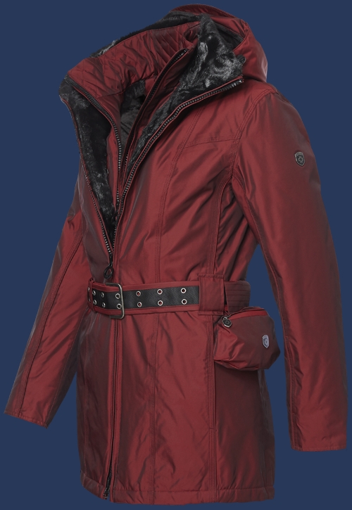 длинная, стильно скроенная многофункциональная парка около 86 см в длину в размере М. Два наружных кармана и один карман на рукаве, встроенные в швы молнии. Карман Наполеон и внутренний карман также снабжены молниями. Воротник и верхняя передняя кромка отделаны уютным мягким трикотажным мехом. Особенностью этой куртки является внутренняя куртка с воротником-стойкой и застежкой-молнией, с маленьким карманом для сотового телефона на ремне. Небольшой декоративный разрез в подоле украшает заднюю часть куртки. Есть утепленный, съемный капюшон. Она идеально подходит для холодных зимних температур, так как имеет мягкую подкладку из искусственного меха Тедди,а в рукавах манжеты из мягкого флиса. Эта куртка сочетает исключительный комфорт с модным шиком. Она имеет ветрозащитные, водонепроницаемые и дышащие свойства. Ее можно стирать в машине при температуре 30 ° C. Она проста в ухаживании, однако, при стирке нельзя добавлять смягчители ткани или отдавать в химчистку.